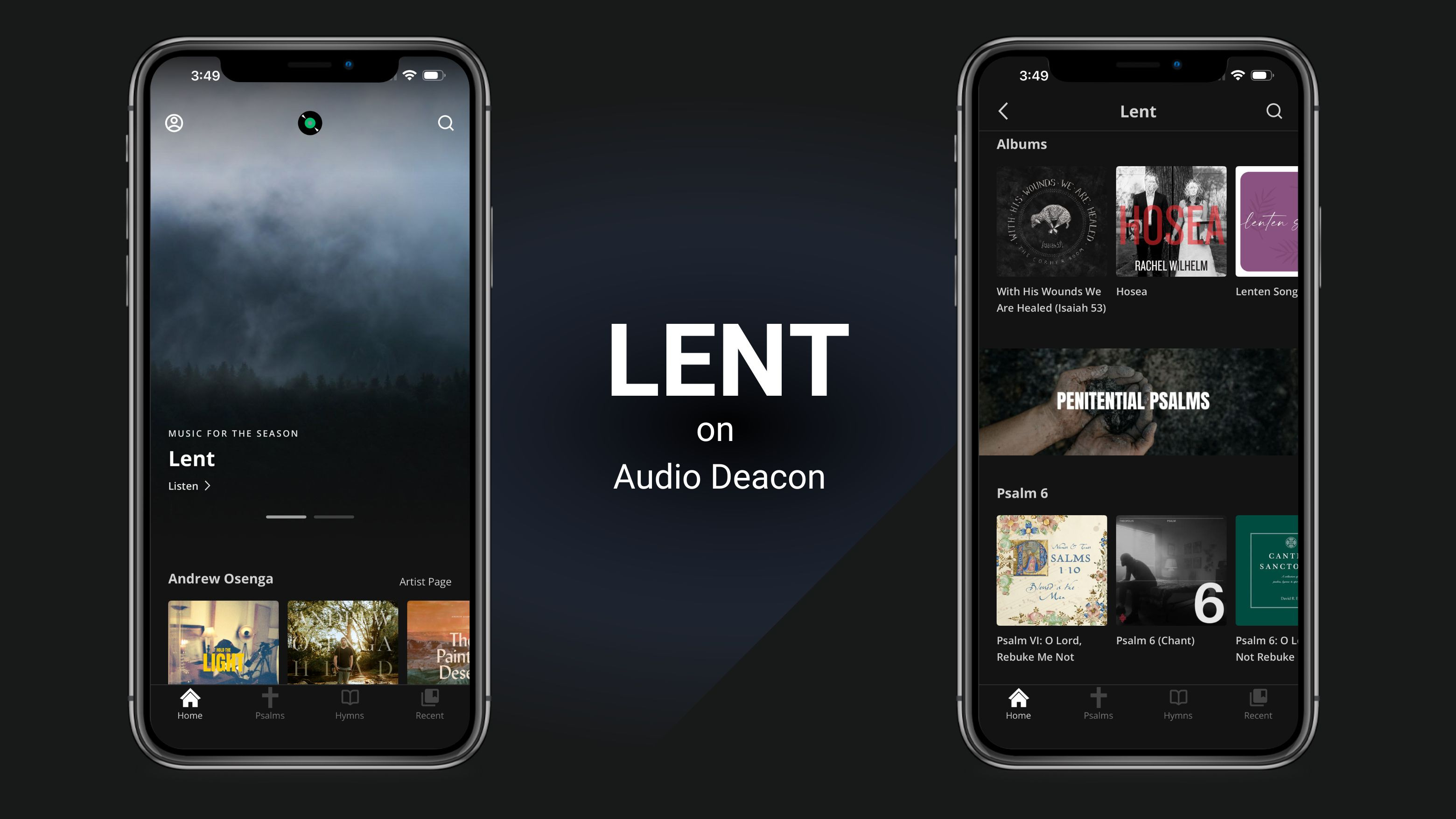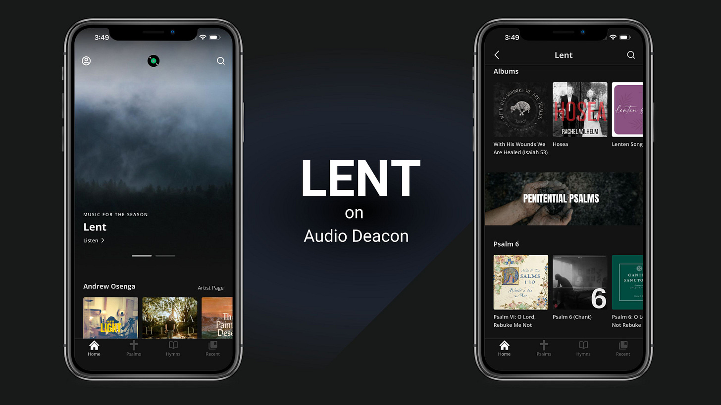 For the next 40 days, the app is highlighting albums, songs, and psalms that fit this season: penitential psalms, records of lament, and works that help us contemplate Christ, His cross, and our response as his people.